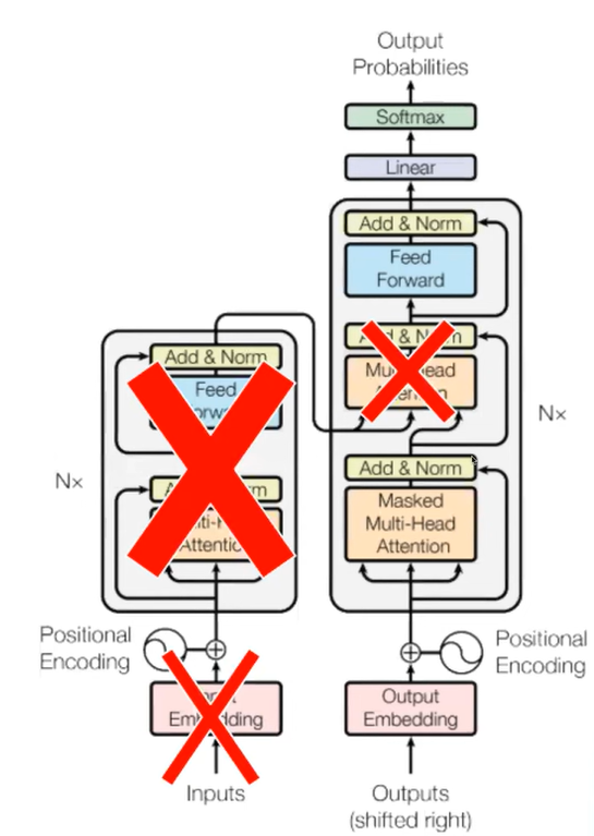 - 기존 트랜스포머의 구조에서 인코더-디코더 사이에 multi-head attention layer를 제외시켰다는 점