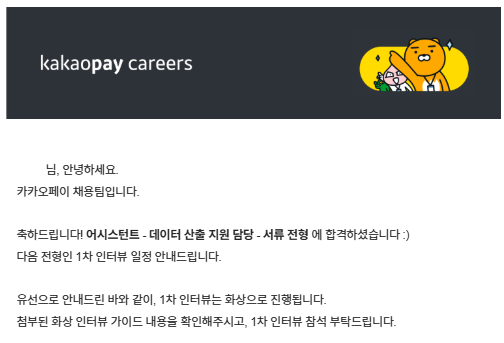 오늘은 나의 첫 IT플랫폼이었던 카카오페이의 데이터 추출 인턴(=어시스턴트) 합격 후기를 남겨보고자한다.
