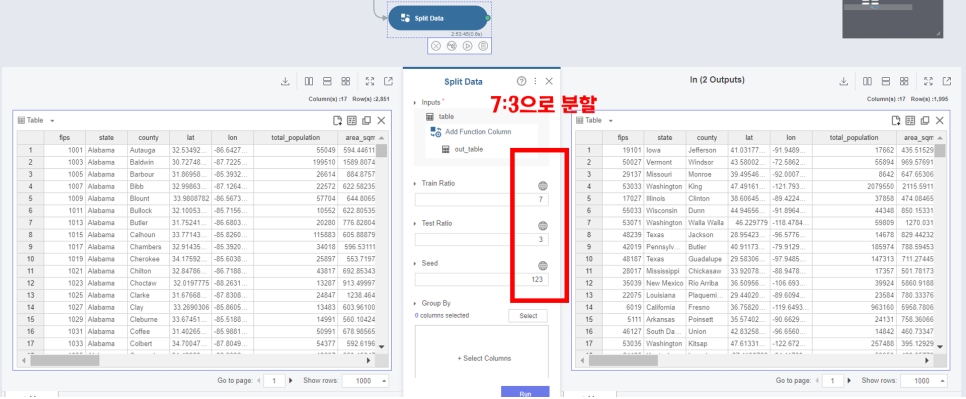 먼저 Train 데이터와 Test 데이터를 7:3 비율로 분할해줍니다.