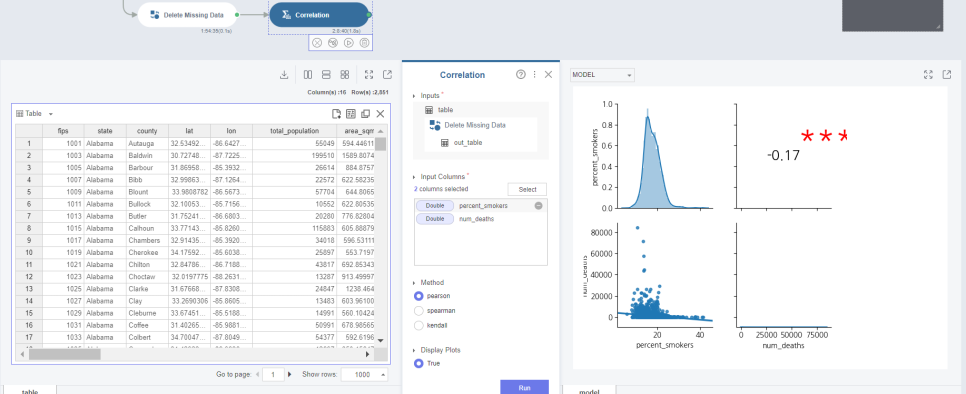 저는 이때 피어슨 상관계수를 선택해주었습니다.