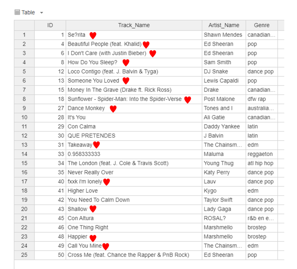 실습 데이터는 <TOP 50 Spotify Songs - 2019> 를 사용하였습니다.