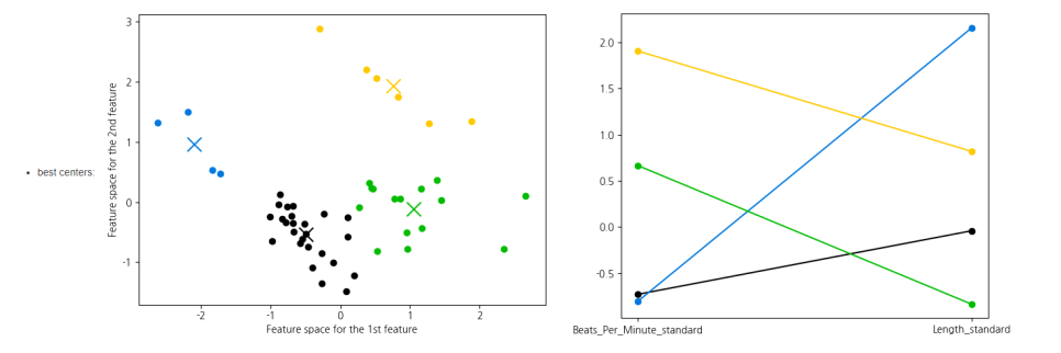 군집 1은 Length가 길고 BPM은 느리고 집단이고