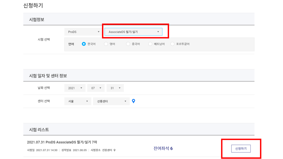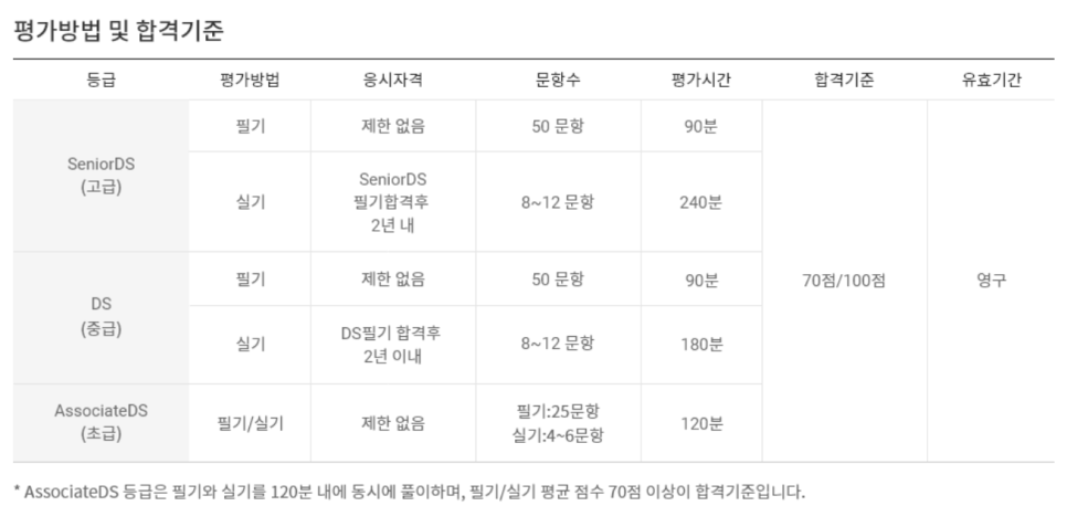 초급 단계인 AssocitateDS의 경우는 필기와 실기가 동시에 진행됩니다 :)