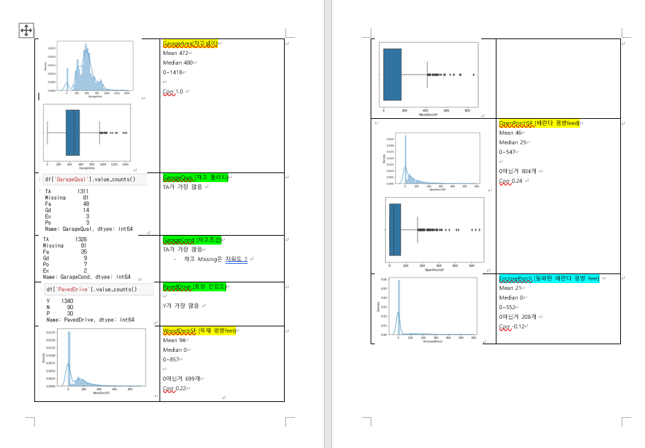 꼼꼼하게 하나하나 변수가 가진 속성을 따져가며 회귀 변수로서 사용할 가치가 있는지, 없는지 정리해주셨어요 !