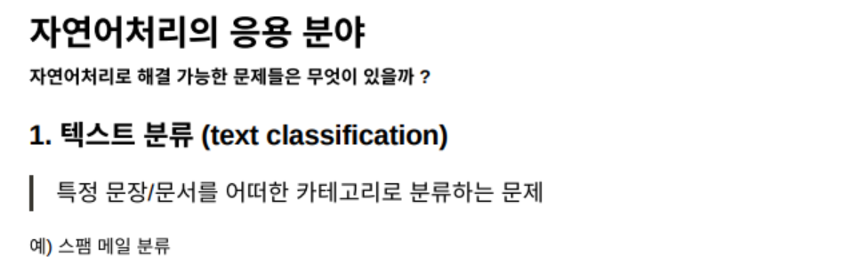 이때 어떤 문제를 해결하고 있냐?라고 물으면 자연어처리의 응용분야를 같이 살펴보면 된다.