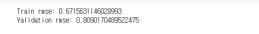 print('Validation rmse:', np.sqrt(mean_squared_error(Y_validation, knn_val_pred)))
